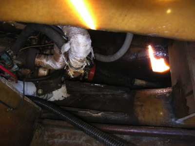 Here, the muffler is installed, but I haven't yet fastened it down or clamped the exhaust hose. |