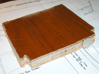 The most difficult part of this job was enlarging the hole. Here's a piece of what I cut out. Notice the thickness and the layers. (That coin is a quarter, by the way.) There are lots of good things to say about the Sea Sprite 28, and one of those is that it is sturdily built. (Look for my cutout from the deck in the "anchor" section for another example.) |